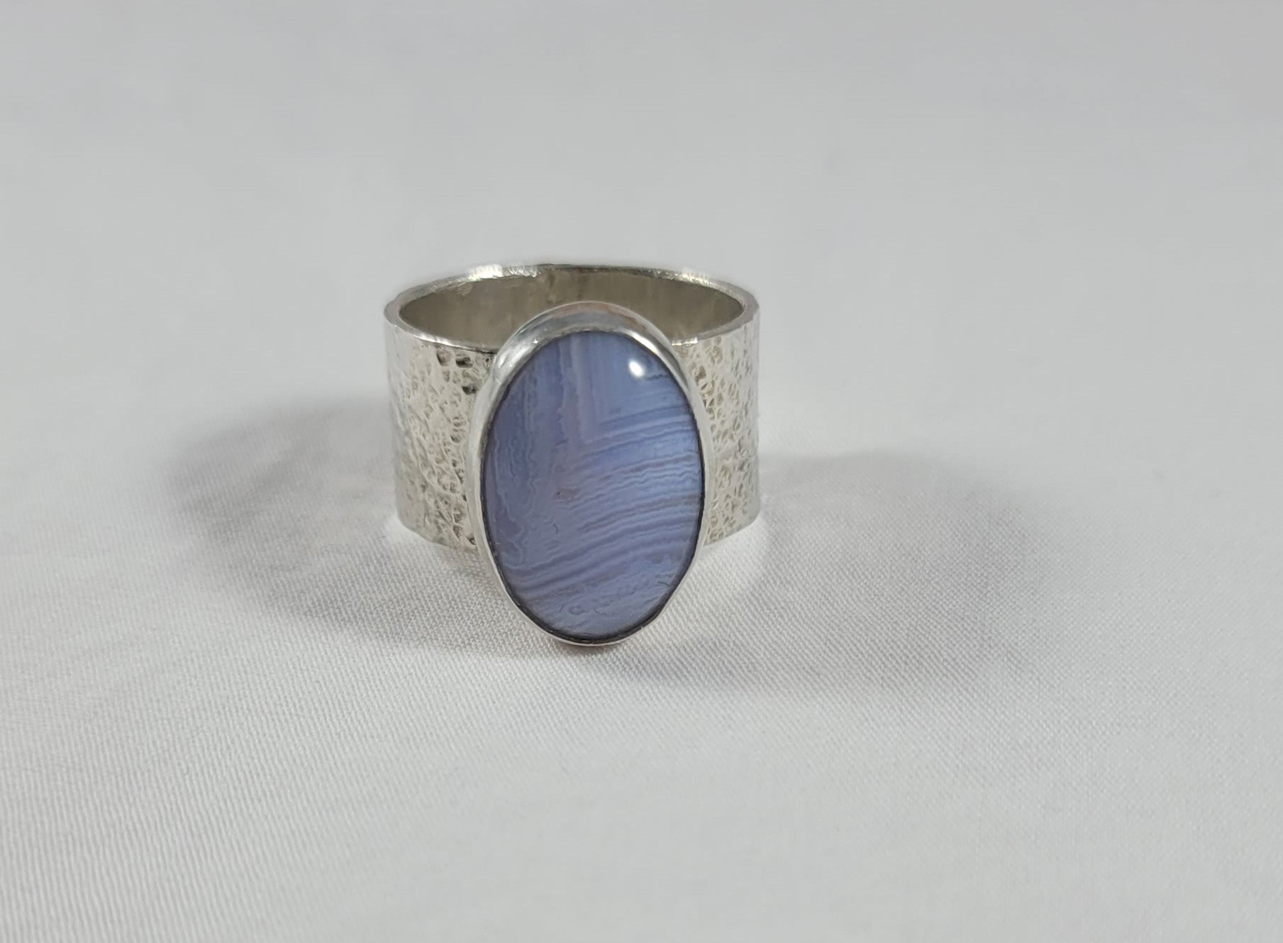 Blue Lace Agate Ring size 9 wide band