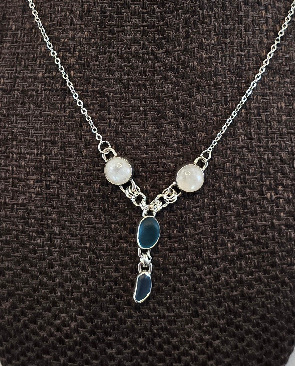 Two moonstone and two seaglass stones set in sterling silver with a 18.5 inches long.
