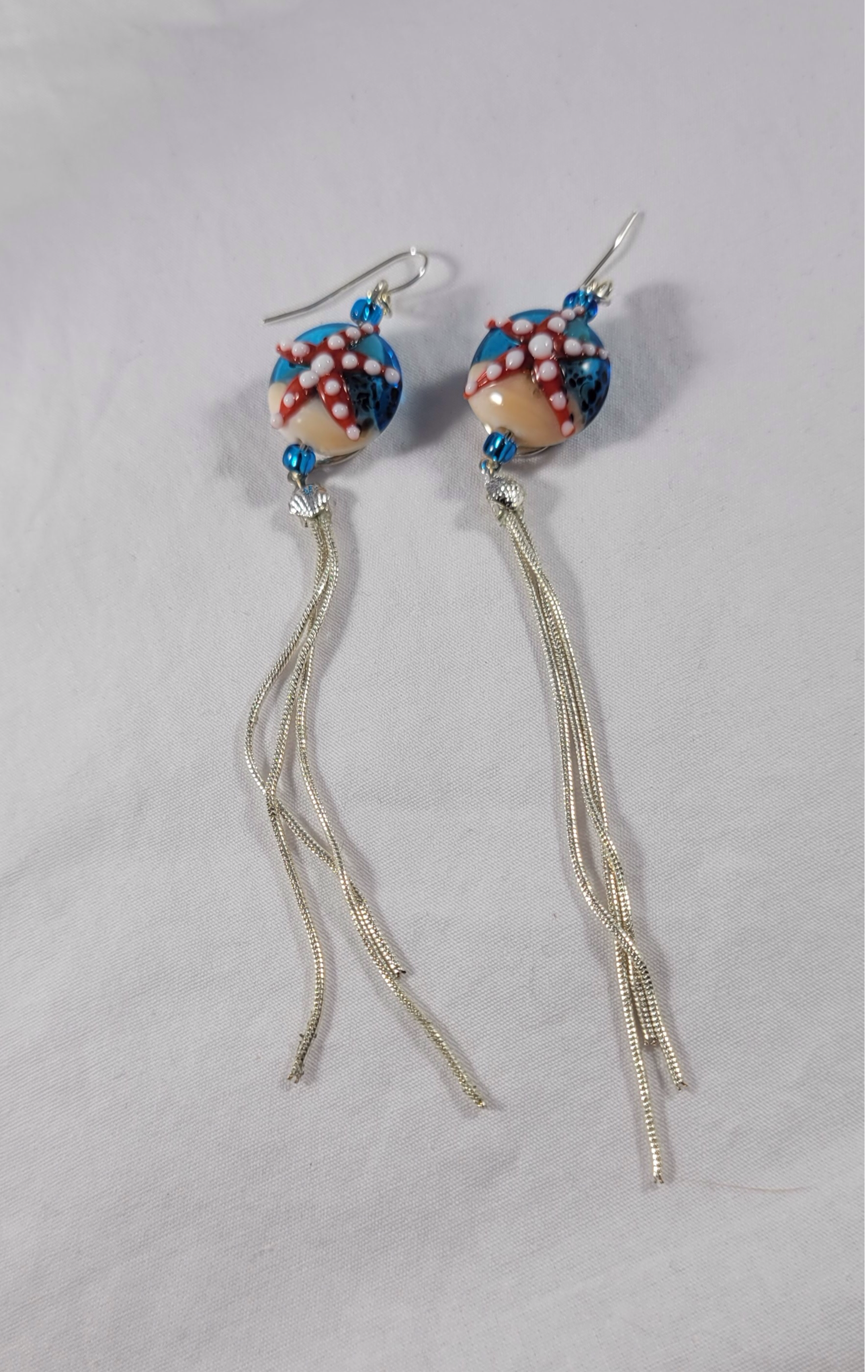 Starfish glass lampwork dangling earrings